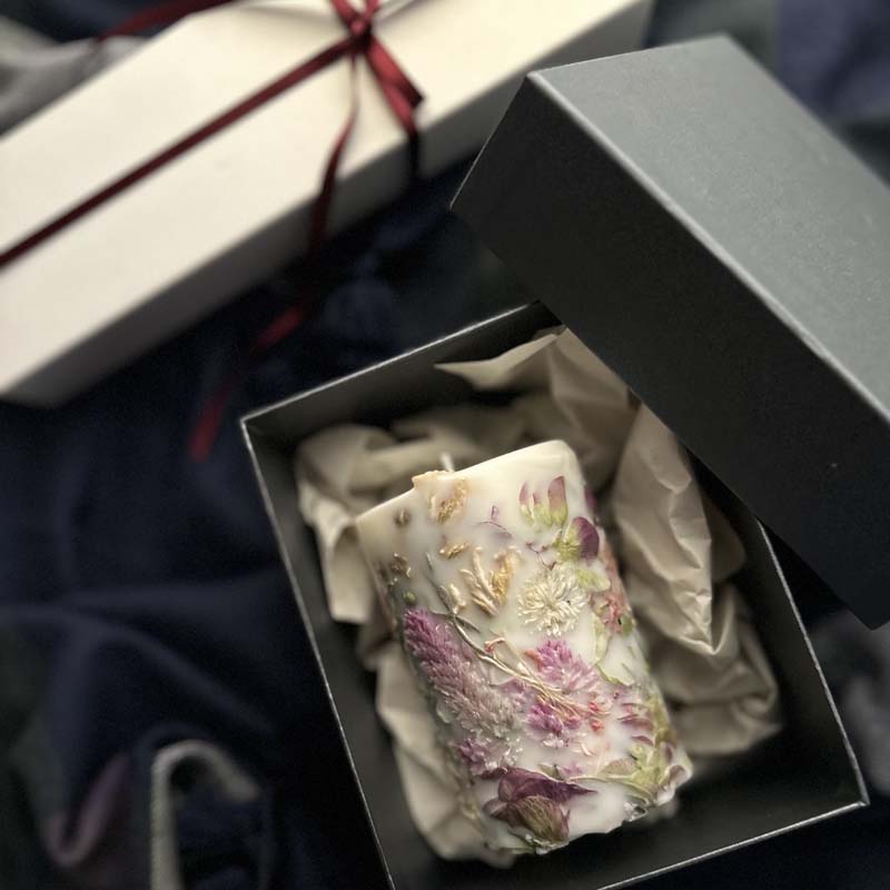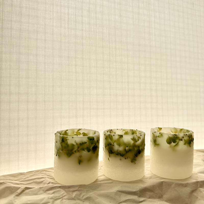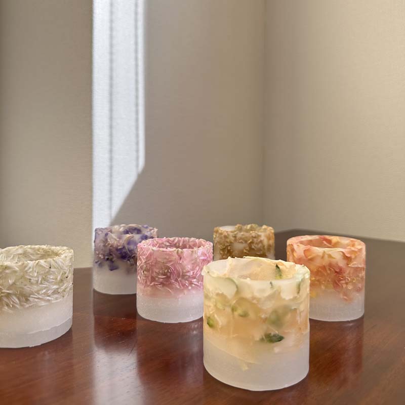 花ビラのかけらを閉じ込めたソイワックスのボタニカルキャンドルを出展してくださいます。